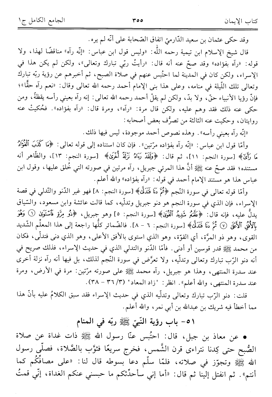 ٥١ - باب رؤية النّبيّ -صلى اللَّه عليه وسلم- ربّه في المنام