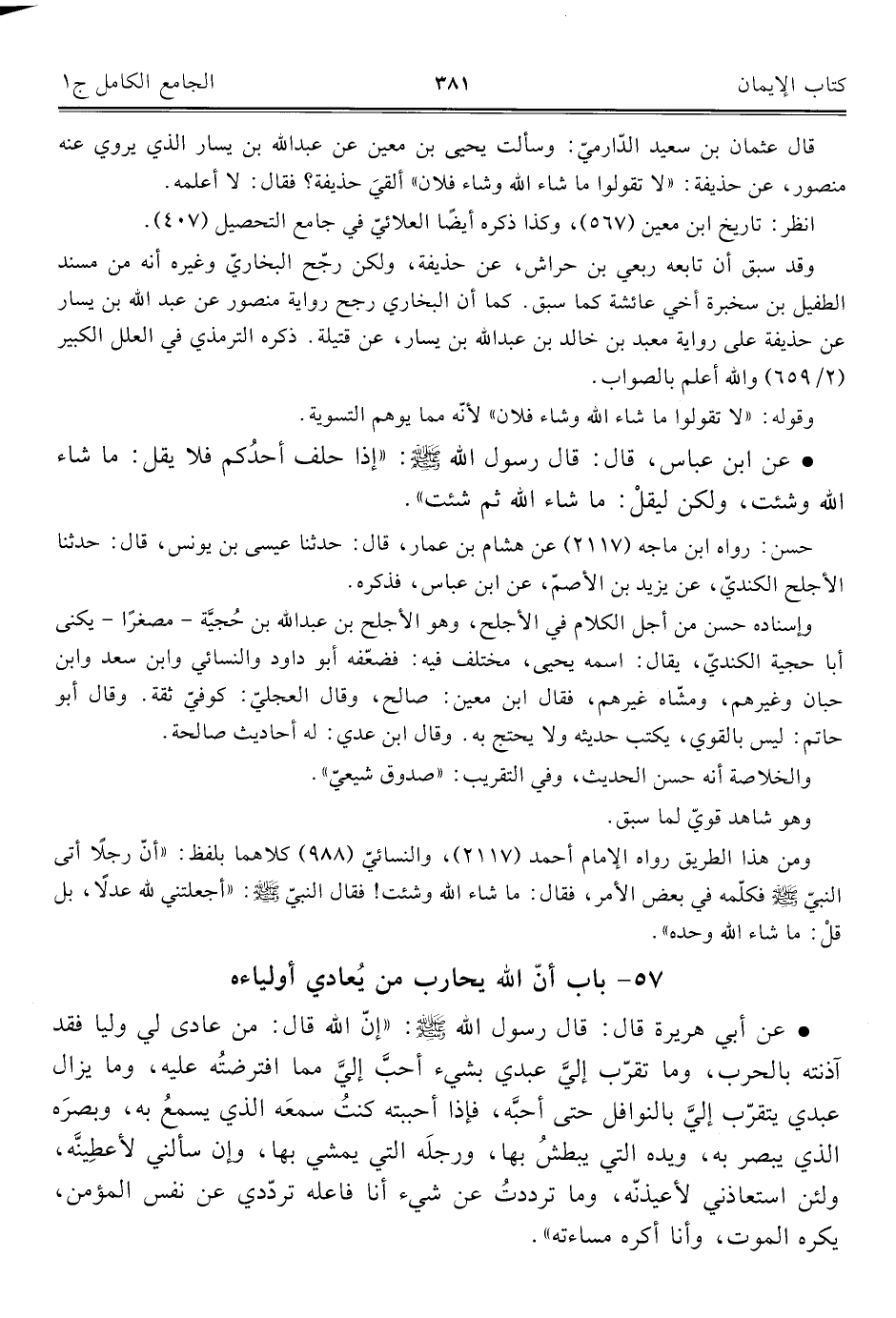 ٥٧ - باب أنّ اللَّه يحارب من يُعادي أولياءه