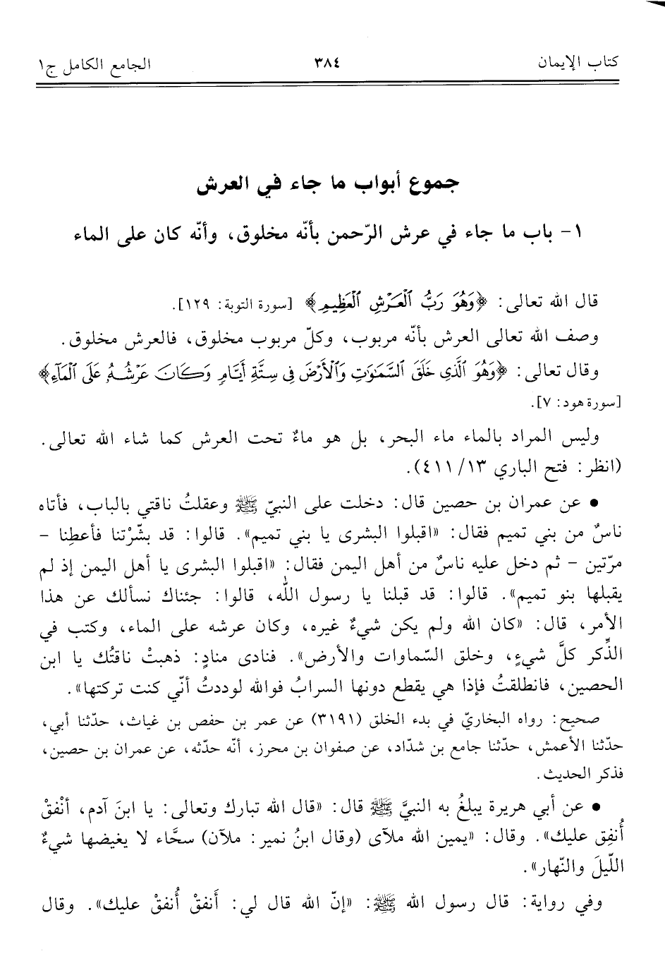 ١ - باب ما جاء في عرش الرّحمن بأنّه مخلوق، وأنّه كان على الماء