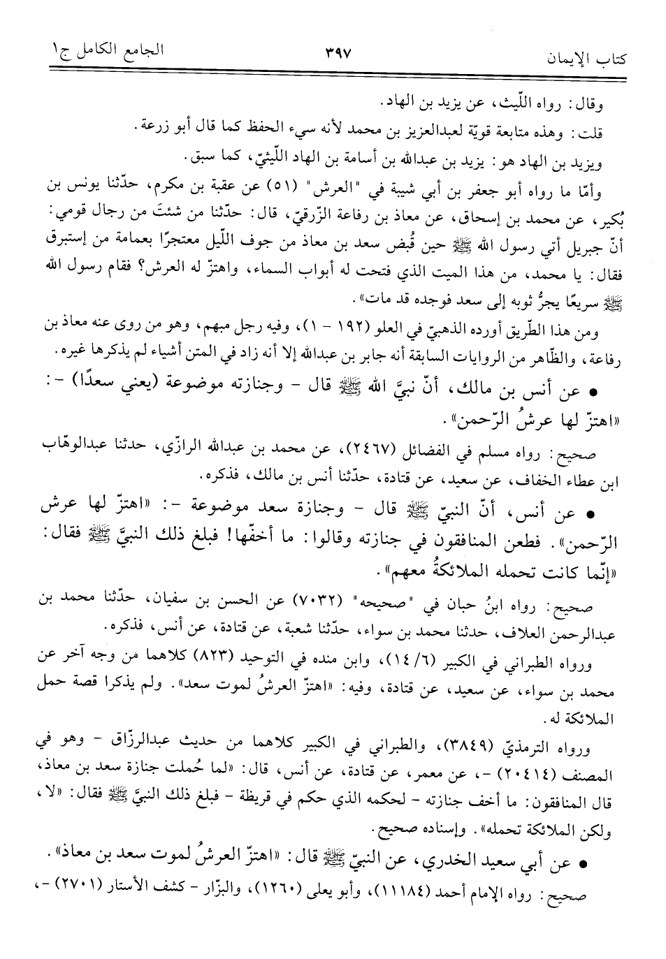 • عن أبي سعيد الخدري، عن النبيّ -صلى اللَّه عليه وسلم- قال: "اهتزّ العرشُ لموت سعد بن معاذ".
