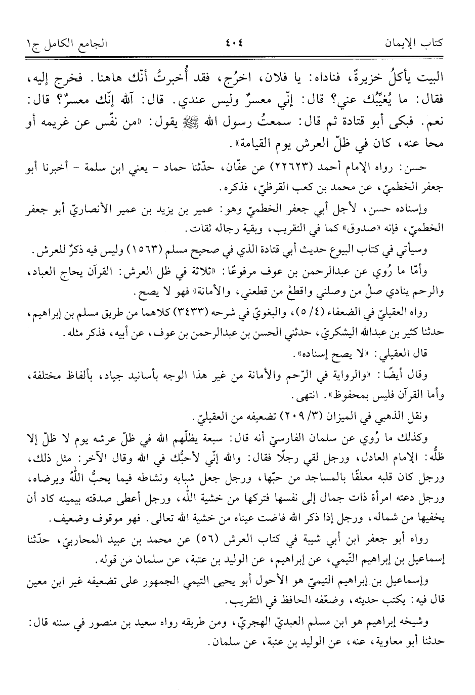 وشيخه إبراهيم هو ابن مسلم العبديّ الهجريّ، ومن طريقه رواه سعيد بن منصور في سننه قال: حدثنا أبو معاوية، عنه، عن الوليد بن عتبة، عن سلمان.