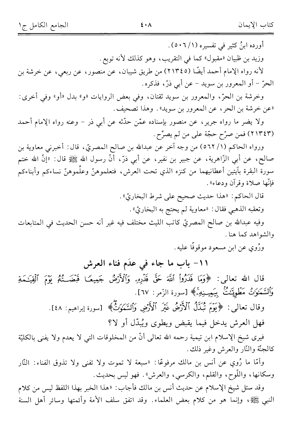 كتاب الجامع الكامل في الحديث الصحيح الشامل المرتب على أبواب الفقه (اسم الجزء: 1)