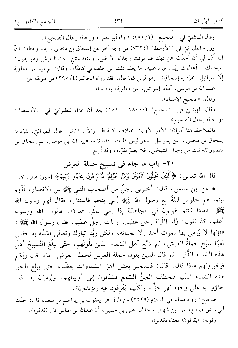 ٢٠ - باب ما جاء في تسبيح حملة العرش