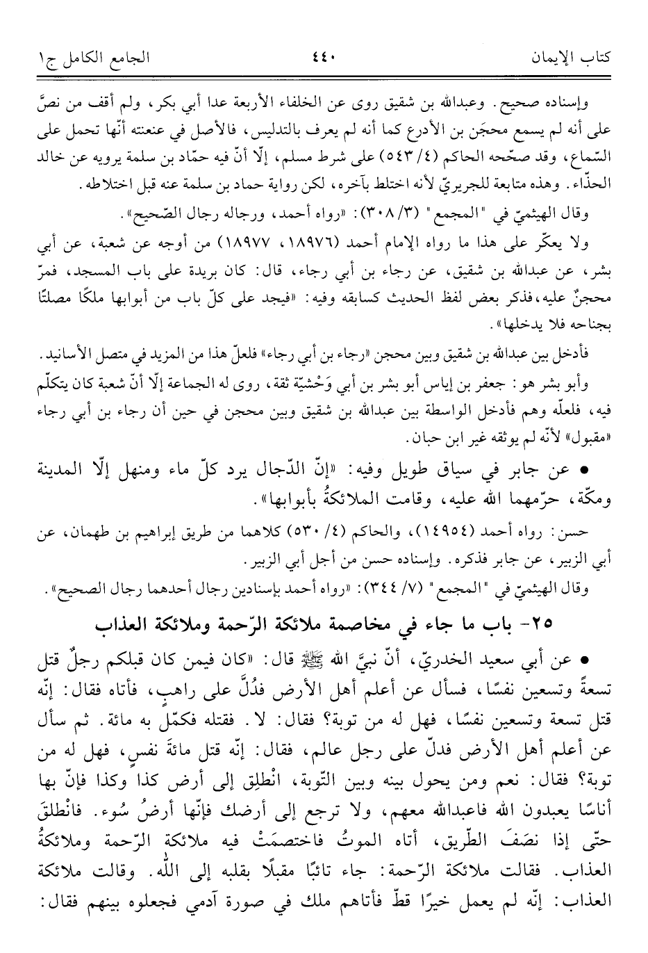 ٢٥ - باب ما جاء في مخاصمة ملائكة الرّحمة وملائكة العذاب