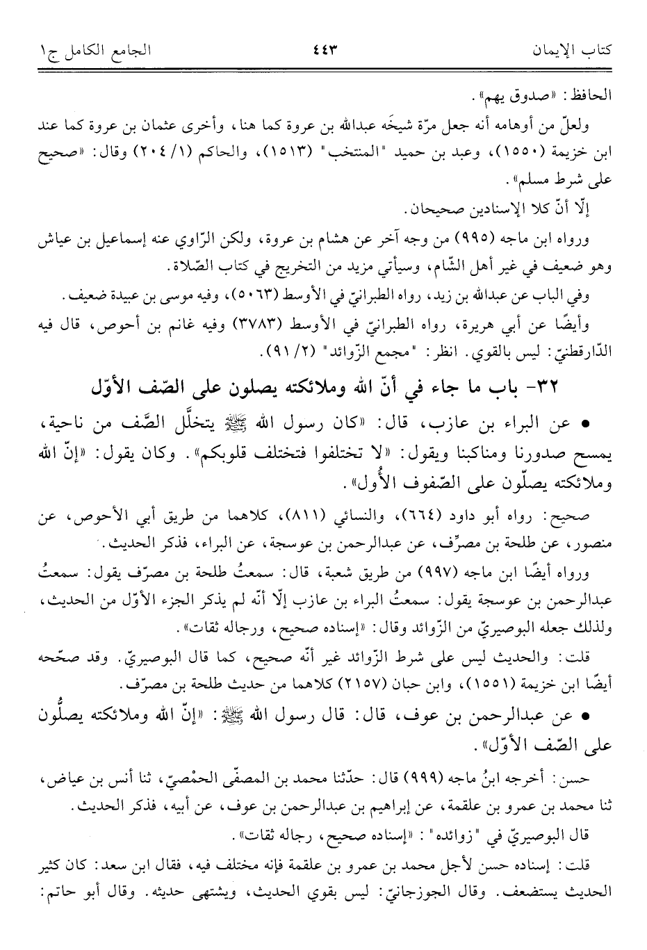 كتاب الجامع الكامل في الحديث الصحيح الشامل المرتب على أبواب الفقه (اسم الجزء: 1)
