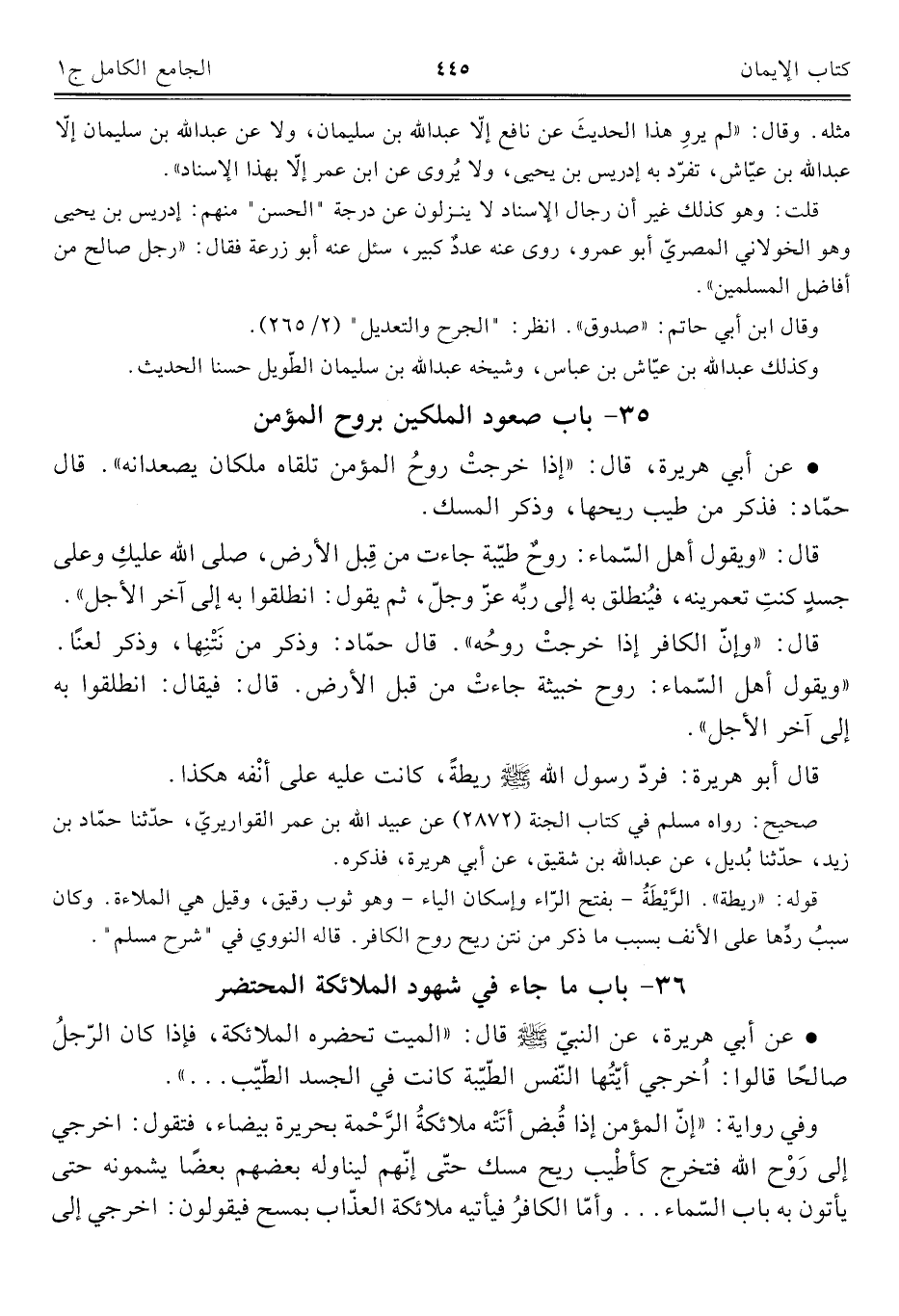 ٣٥ - باب صعود الملكين بروح المؤمن