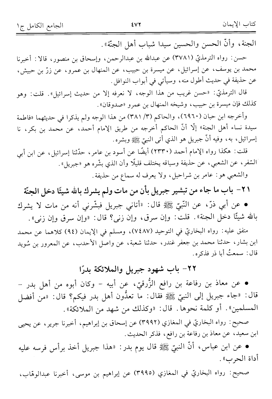 كتاب الجامع الكامل في الحديث الصحيح الشامل المرتب على أبواب الفقه (اسم الجزء: 1)