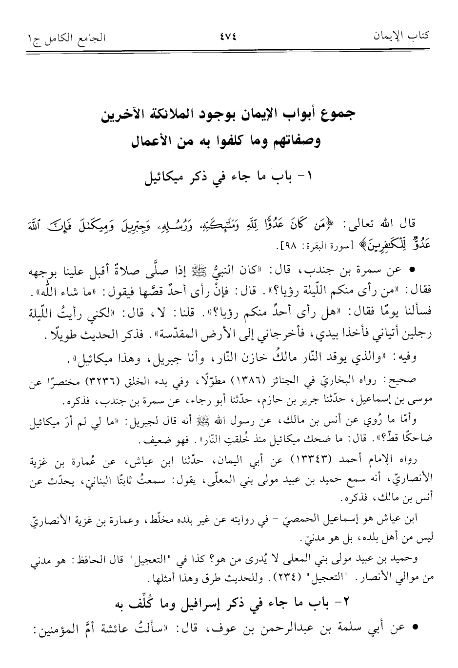 جموع أبواب الإيمان بوجود الملائكة الآخرين وصفاتهم وما كلفوا به من الأعمال