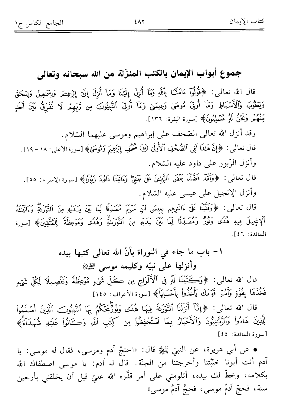 جموع أبواب الإيمان بالكتب المنزلة من اللَّه سبحانه وتعالى