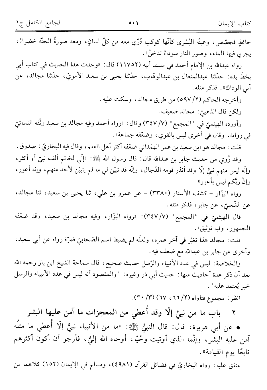 قلت: مجالد هذا تغيّر في آخر عمره، ولعلّه لم يضبط اسم الصّحابيّ فمرّة رواه عن أبي سعيد، وأخرى عن جابر بن عبد اللَّه مع ضعف فيه.