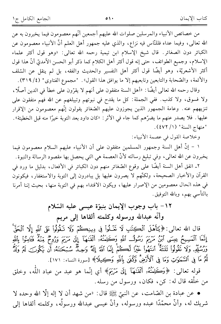 ١٢ - باب وجوب الإيمان بنبوّة عيسى عليه السّلام وأنّه عبد اللَّه ورسوله وكلمته ألقاها إلى مريم