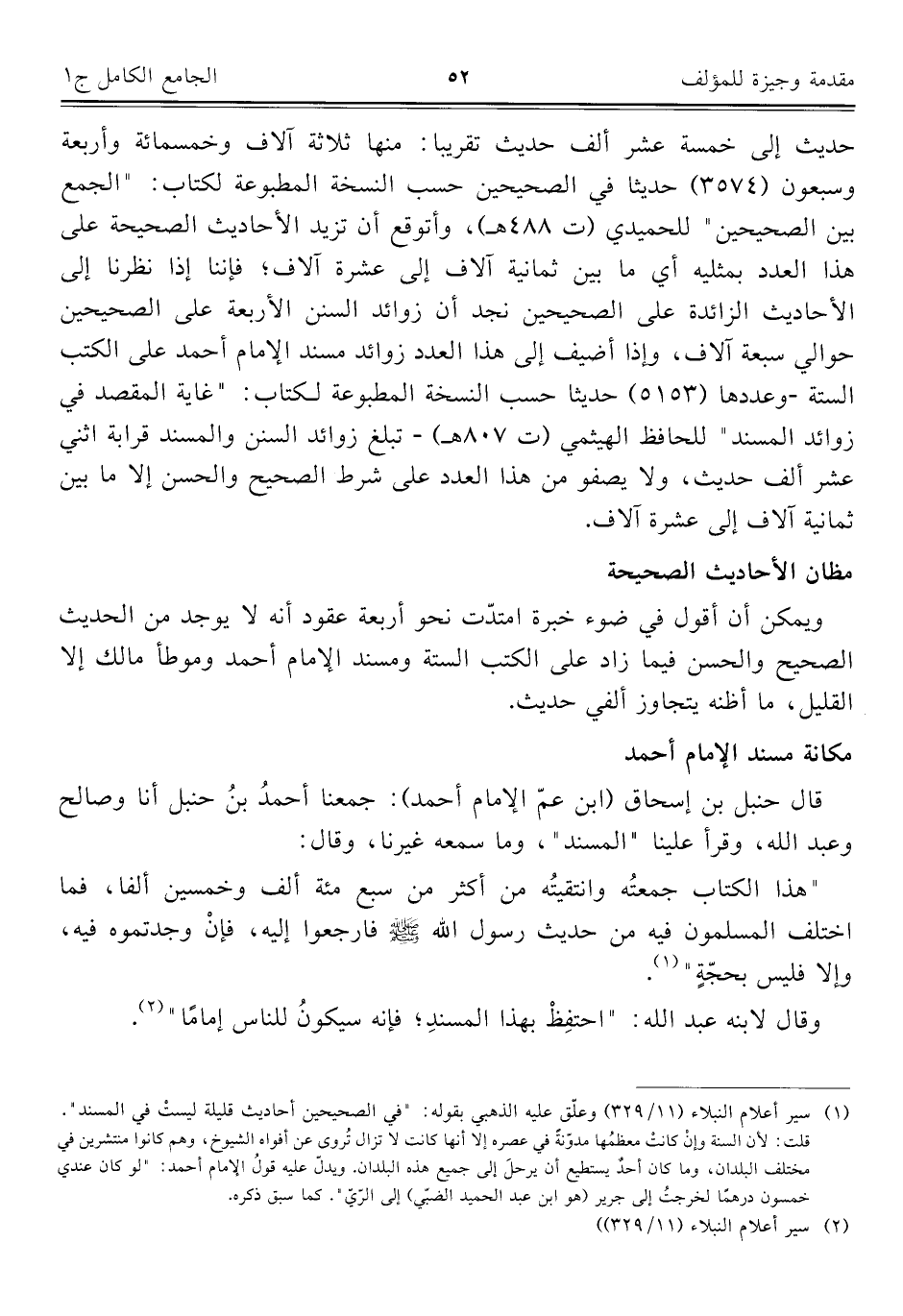 (¬١) سير أعلام النبلاء (١١/ ٣٢٩) وعلّق عليه الذهبي بقوله: "في الصحيحين أحاديث قليلة ليست في المسند". قلت: لأن السنة وإنْ كانتْ معظمُها مدوّنةً في عصره إلا أنها كانت لا تزال تُروي عن أفواه الشيوخ، وهم كانوا منتشرين في مختلف البلدان، وما كان أحدٌ يستطيع أن يرحل إلى جميع هذه البلدان. ويدلّ عليه قولُ الإمام أحمد: "لو كان عندي خمسون درهمًا لخرجتُ إلى جرير (هو ابن عبد الحميد الضبّي) إلى الرّيّ". كما سبق ذكره.