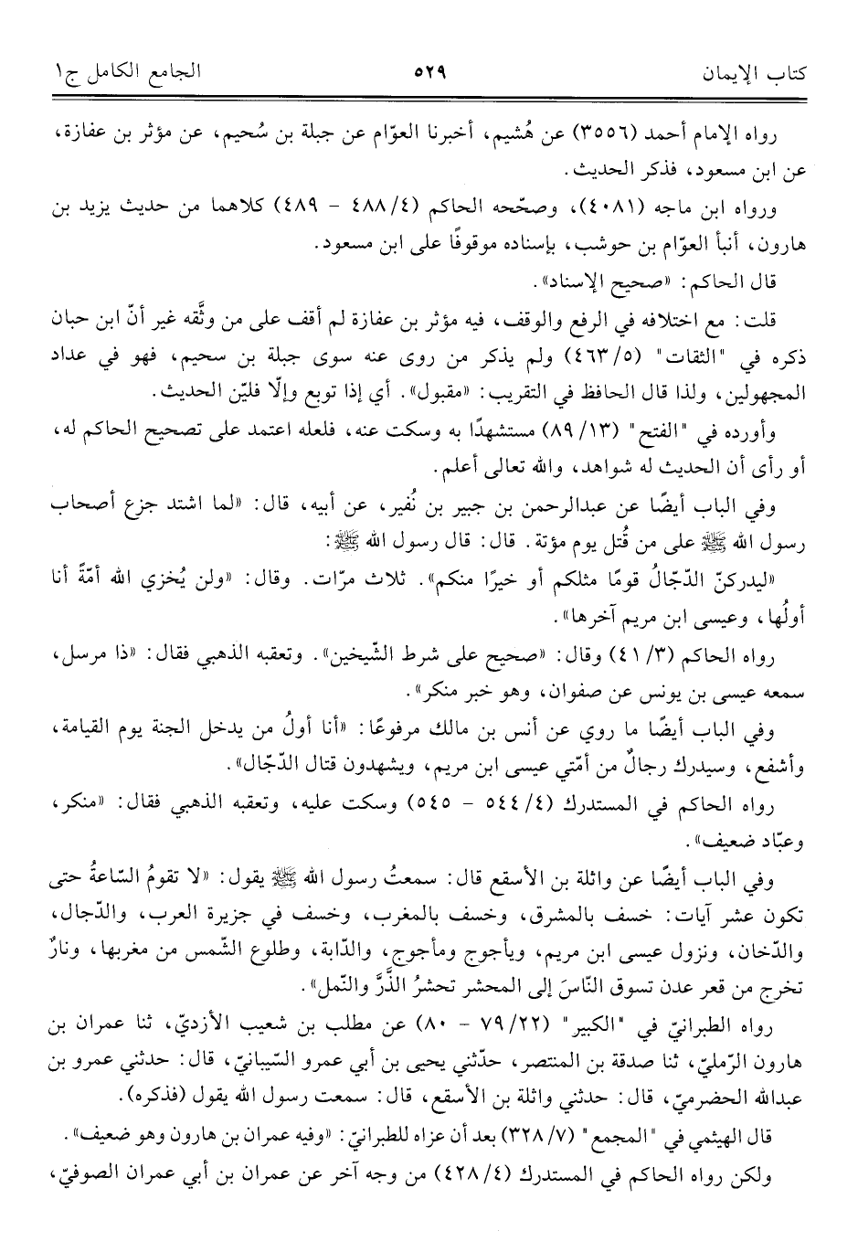 ورواه ابن ماجه (٤٠٨١)، وصحّحه الحاكم (٤/ ٤٨٨ - ٤٨٩) كلاهما من حديث يزيد بن هارون، أنبأ العوّام بن حوشب، بإسناده موقوفًا على ابن مسعود.