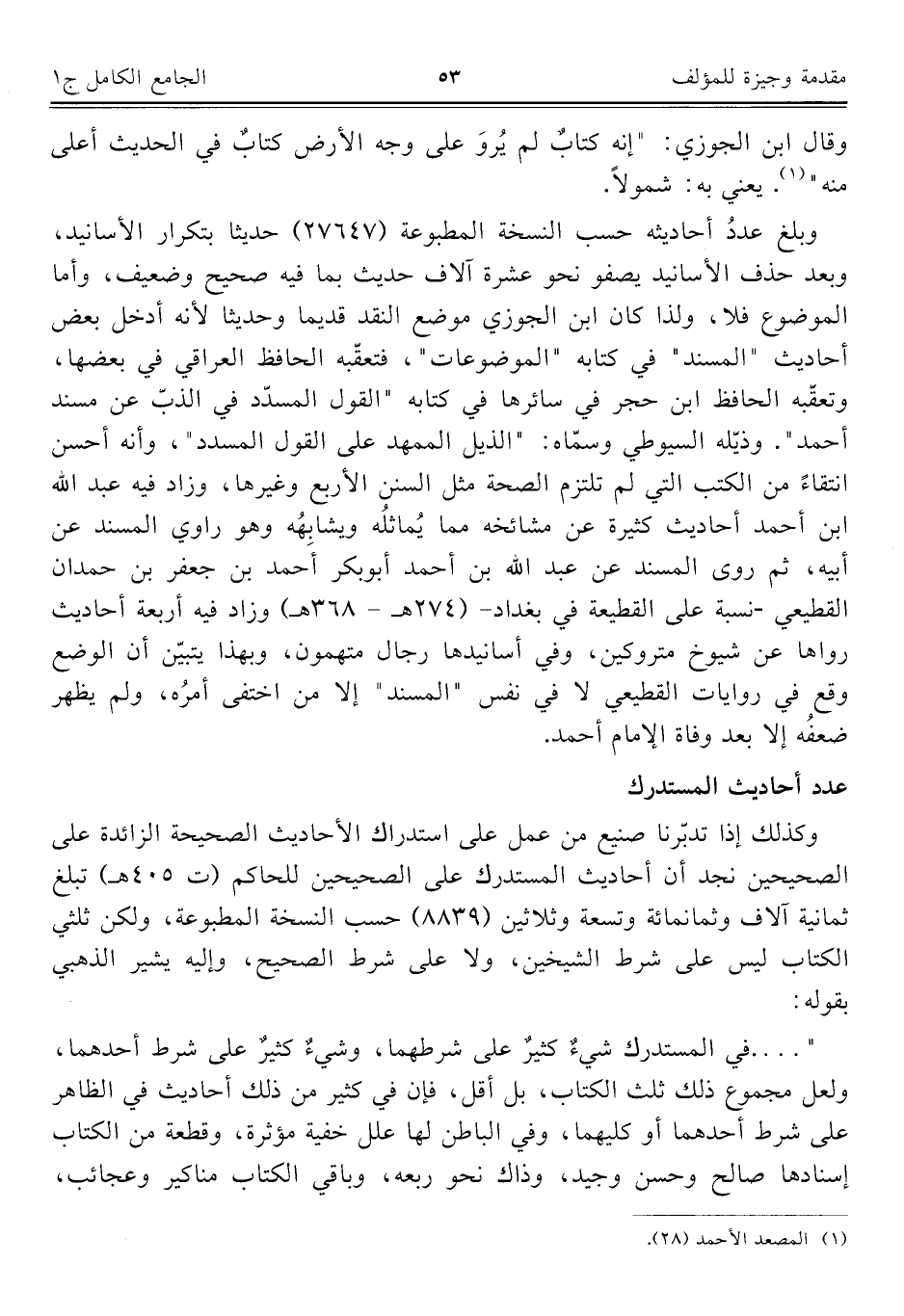 وقال ابن الجوزي: "إنه كتابٌ لم يُروَ على وجه الأرض كتابٌ في الحديث أعلى منه" (¬١). يعني به: شمولًا.