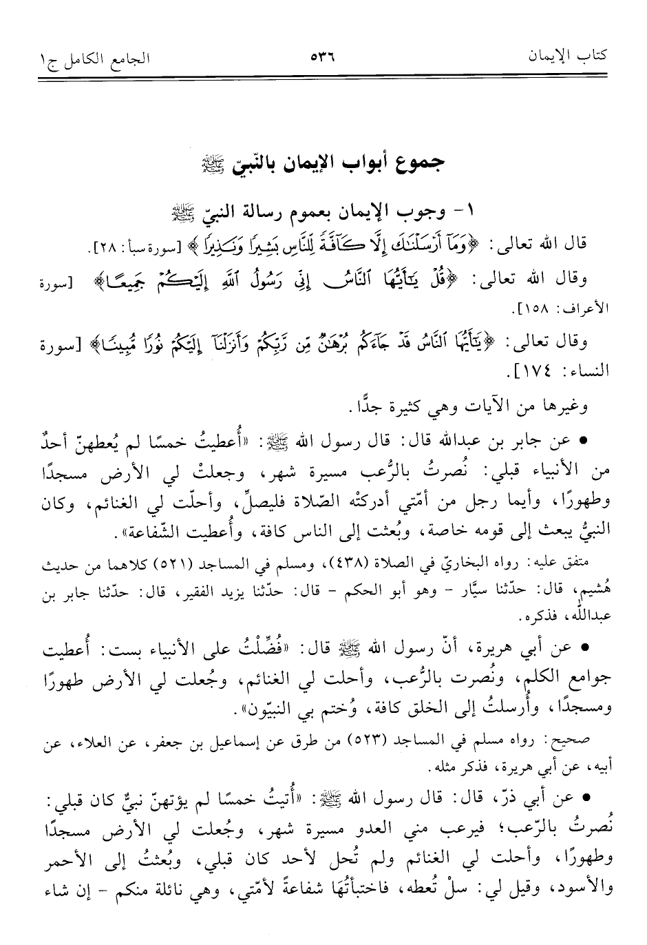 جموع أبواب الإيمان بالنّبيّ -صلى اللَّه عليه وسلم-
