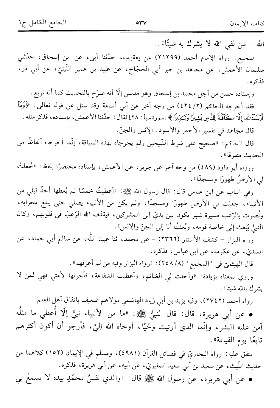كتاب الجامع الكامل في الحديث الصحيح الشامل المرتب على أبواب الفقه (اسم الجزء: 1)