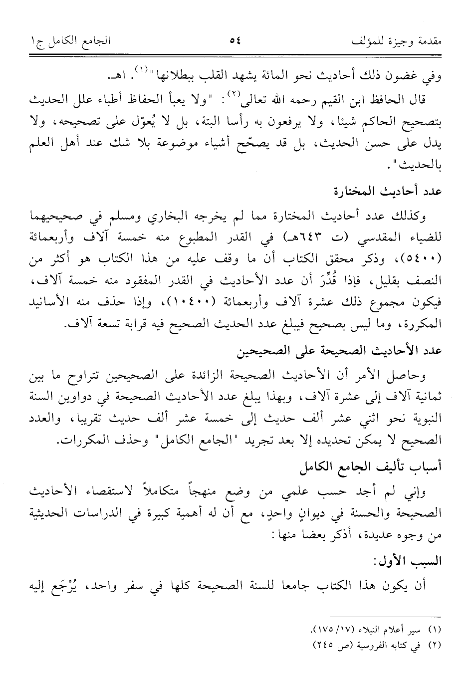 وحاصل الأمر أن الأحاديث الصحيحة الزائدة على الصحيحين تتراوح ما بين ثمانية آلاف إلى عشرة آلاف، وبهذا يبلغ عدد الأحاديث الصحيحة في دواوين السنة النبوية نحو اثني عشر ألف حديث إلى خمسة عشر ألف حديث تقريبا، والعدد الصحيح لا يمكن تحديده إلا بعد تجريد "الجامع الكامل" وحذف المكررات.