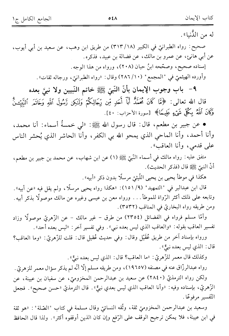 ٩ - باب وجوب الإيمان بأنّ النّبيّ -صلى اللَّه عليه وسلم- خاتم النّبيين ولا نبيَّ بعده
