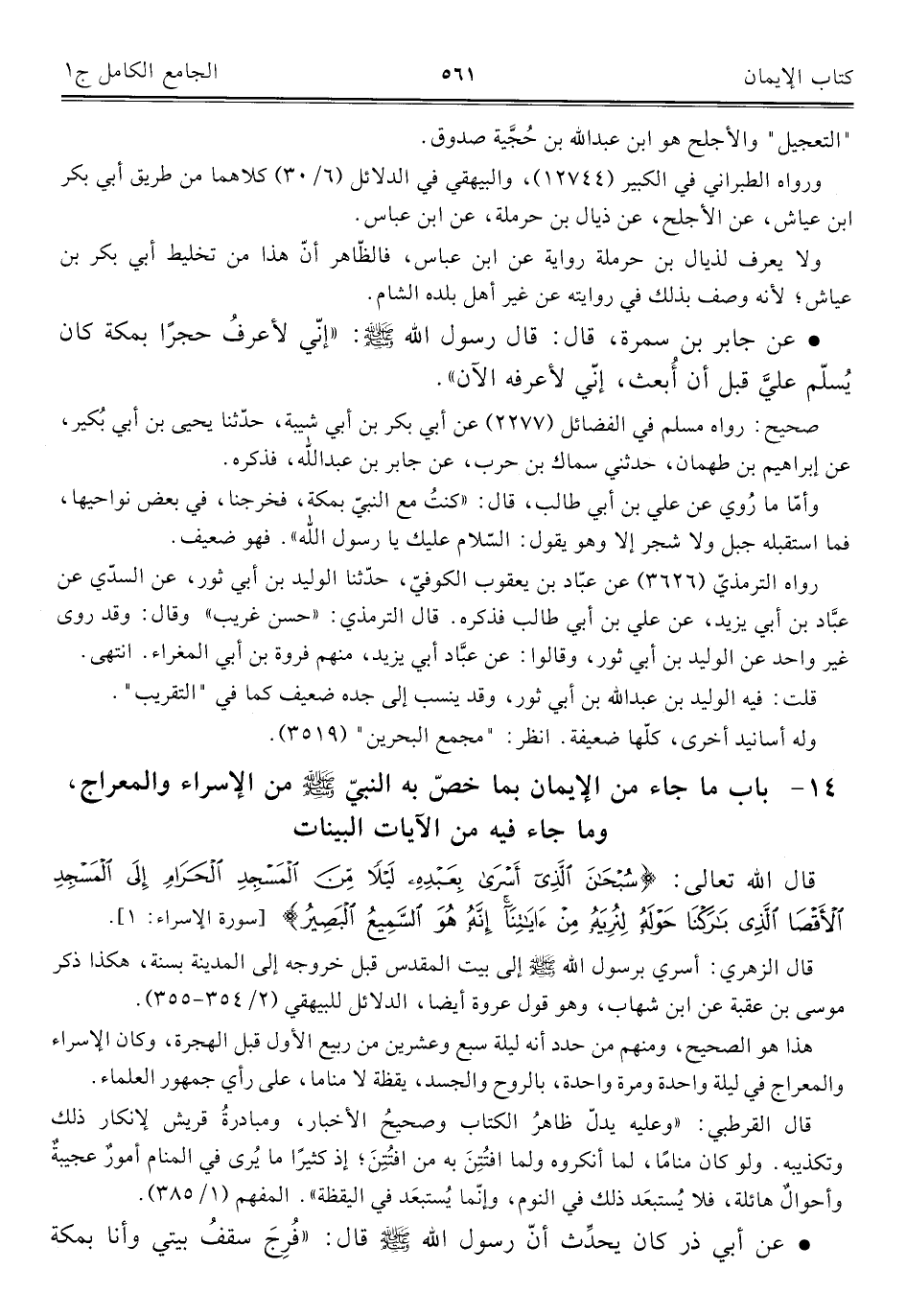 ١٤ - باب ما جاء من الإيمان بما خصّ به النبيّ -صلى اللَّه عليه وسلم- من الإسراء والمعراج، وما جاء فيه من الآيات البينات
