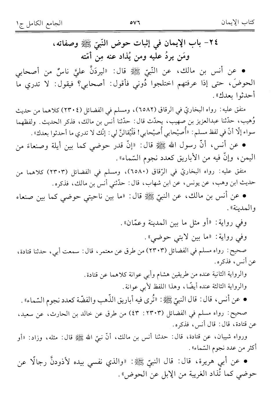 ٢٤ - باب الإيمان في إثبات حوض النّبيّ -صلى اللَّه عليه وسلم- وصفاته، ومَن يردُ عليه ومن يُذاد عنه مِن أمّته