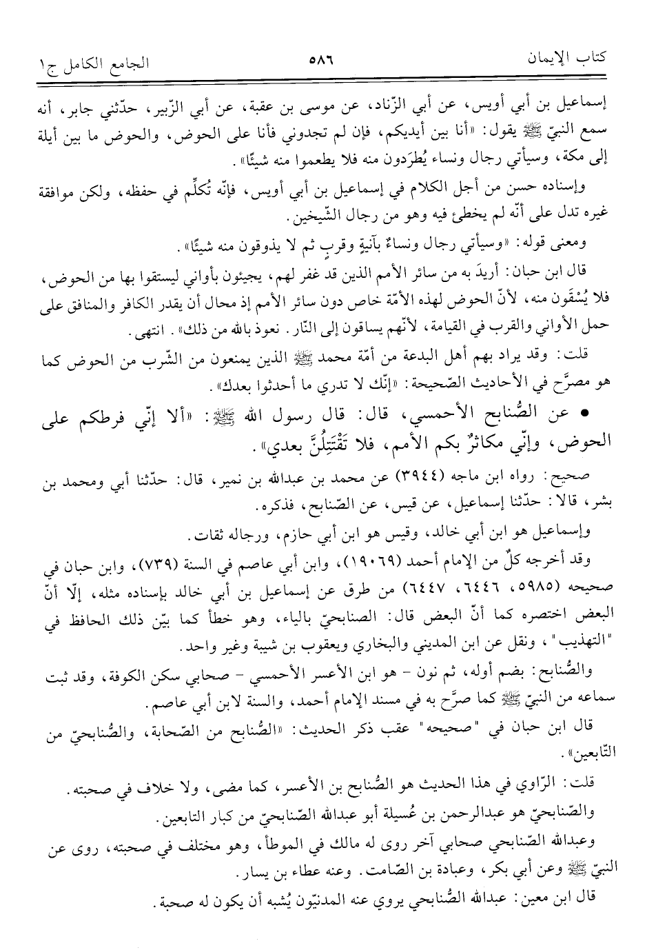 صحيح: رواه ابن ماجه (٣٩٤٤) عن محمد بن عبد اللَّه بن نمير، قال: حدثنا أبي ومحمد بن بشر، قالا: حدثنا إسماعيل، عن قيس، عن الصّنابح، فذكره.