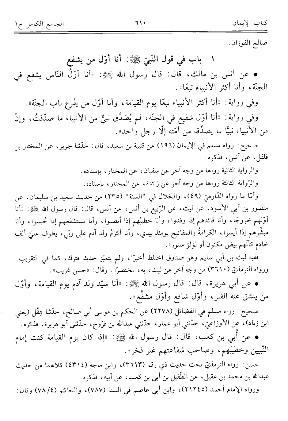 كتاب الجامع الكامل في الحديث الصحيح الشامل المرتب على أبواب الفقه (اسم الجزء: 1)