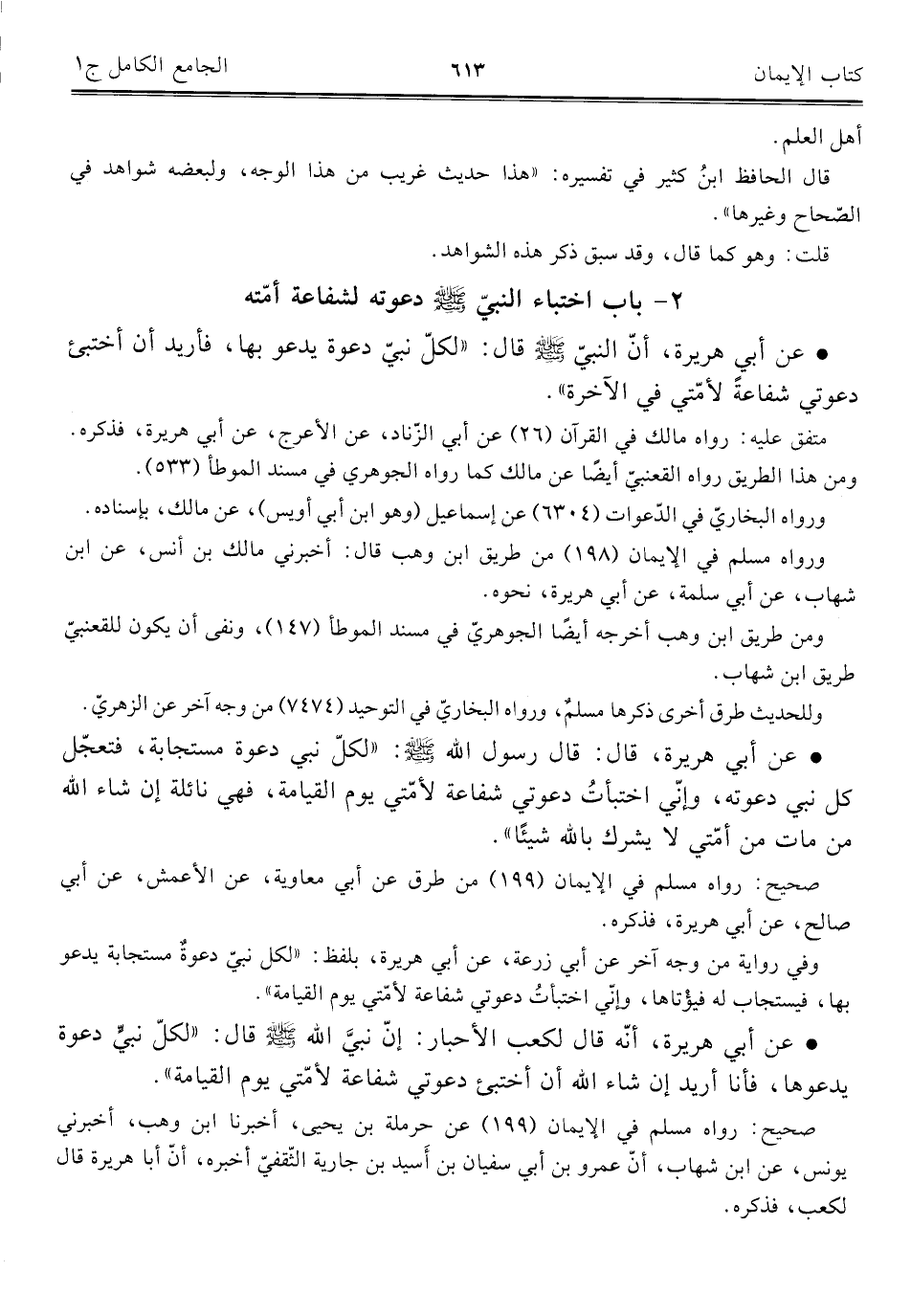 كتاب الجامع الكامل في الحديث الصحيح الشامل المرتب على أبواب الفقه (اسم الجزء: 1)