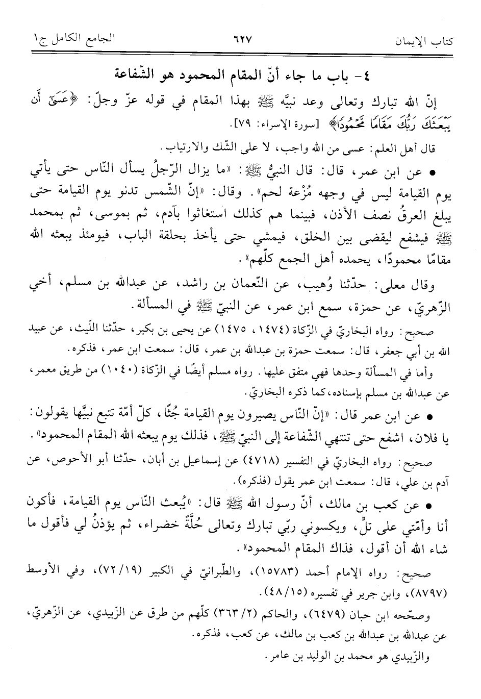 ٤ - باب ما جاء أنّ المقام المحمود هو الشّفاعة