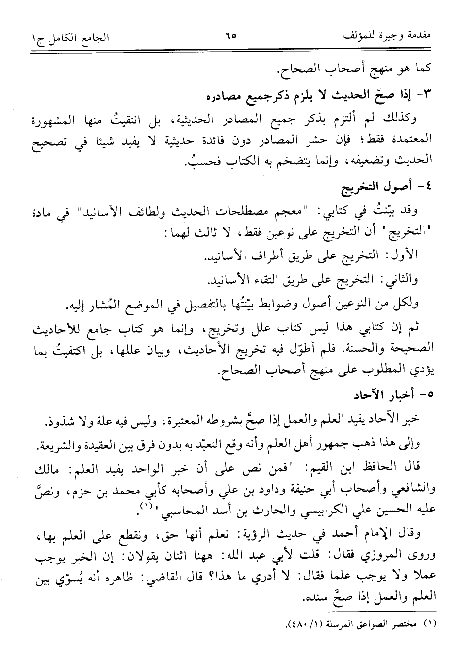ثم إن كتابي هذا ليس كتاب علل وتخريج، وإنما هو كتاب جامع للأحاديث الصحيحة والحسنة. فلم أطوّل فيه تخريج الأحاديث، وبيان عللها، بل اكتفيتُ بما يؤدي المطلوب على منهج أصحاب الصحاح.
