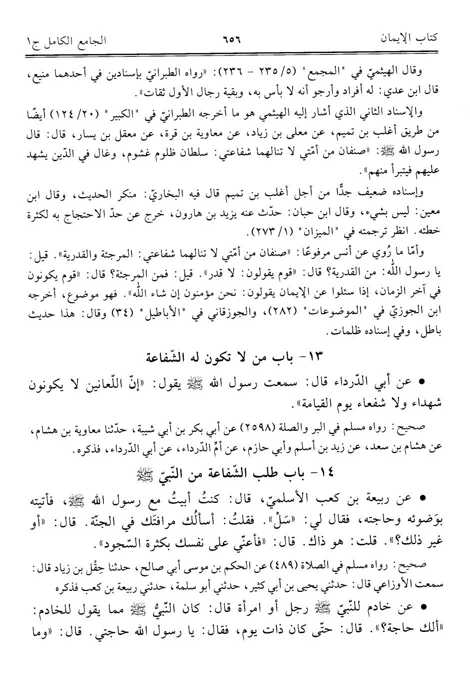 ١٣ - باب من لا تكون له الشّفاعة