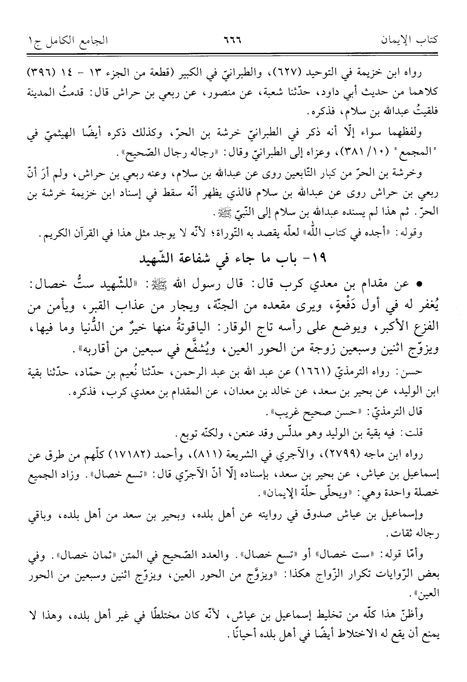 ١٩ - باب ما جاء في شفاعة الشّهيد