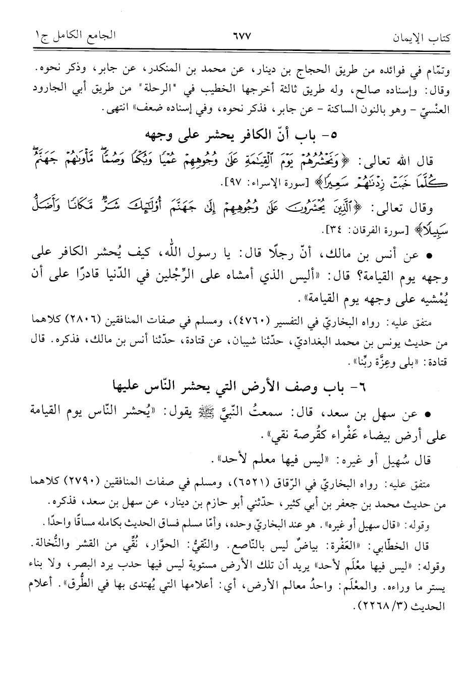 ٦ - باب وصف الأرض التي يحشر النّاس عليها