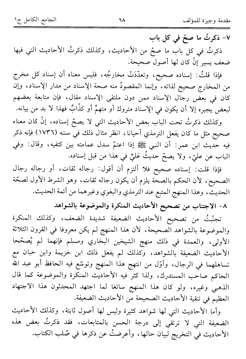 ذكرتُ في كل باب ما صحّ من الأحاديث، وكذلك ذكرتُ الأحاديث التي فيها ضعف يسير إنْ كان لها أصول صحيحة.