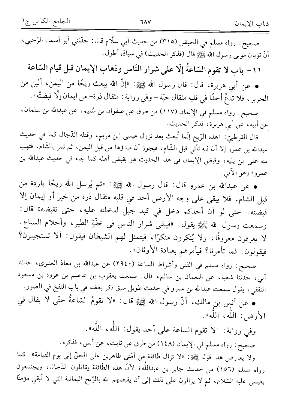 ١١ - باب لا تقوم السّاعةُ إلّا على شرار النّاس وذهاب الإيمان قبل قيام السّاعة