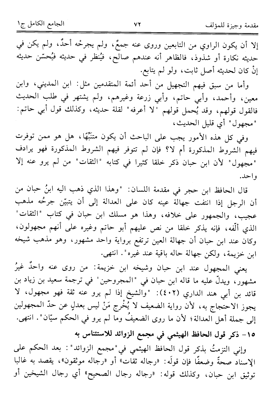 ١٥ - ذكر قول الحافظ الهيثمي في مجمع الزوائد للاستئناس به