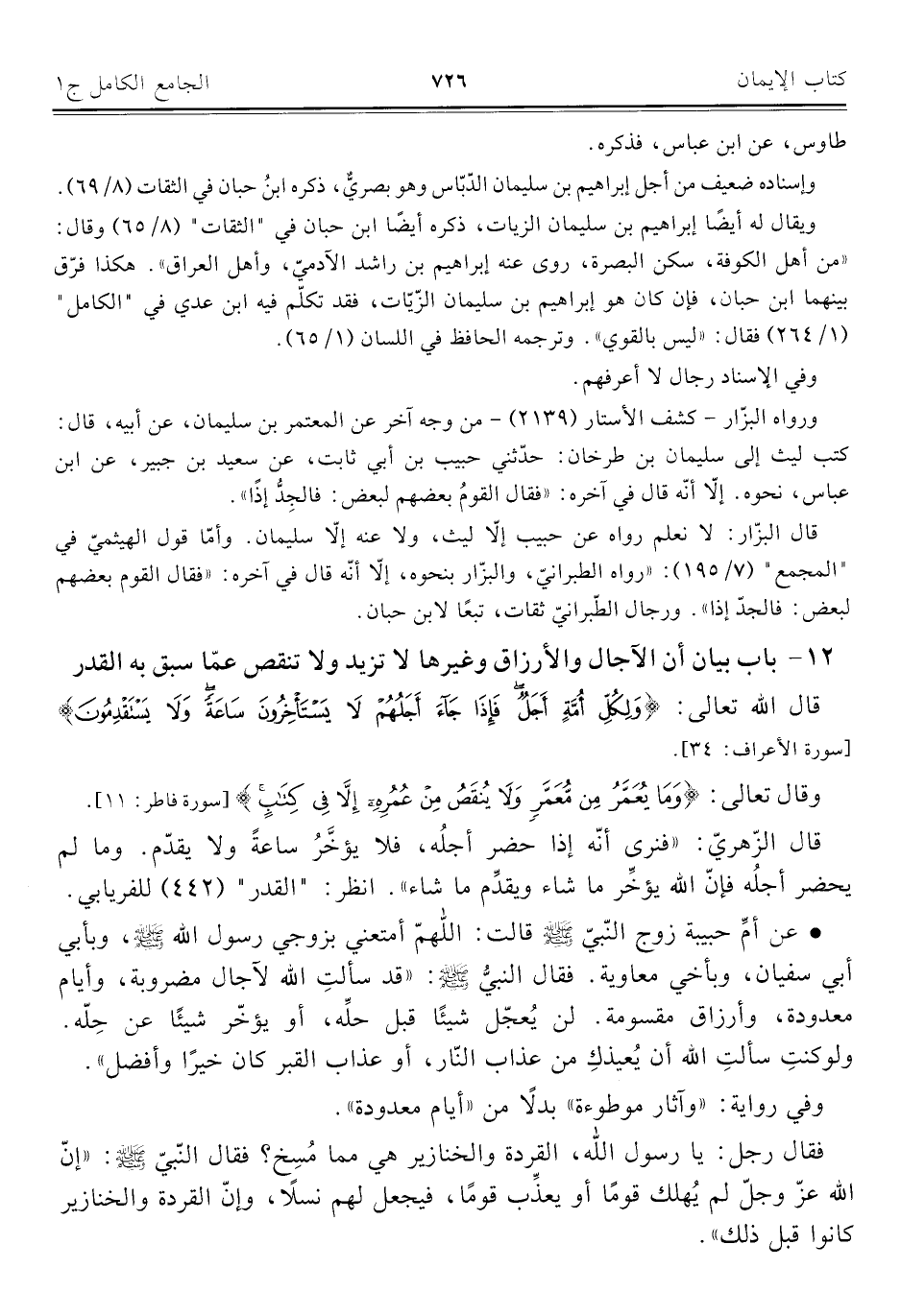 قال الزّهريّ: "فنرى أنّه إذا حضر أجلُه، فلا يؤخَّرُ ساعةً ولا يقدّم. وما لم يحضر أجلُه فإنّ اللَّه يؤخِّر ما شاء ويقدِّم ما شاء". انظر: "القدر" (٤٤٢) للفريابي.