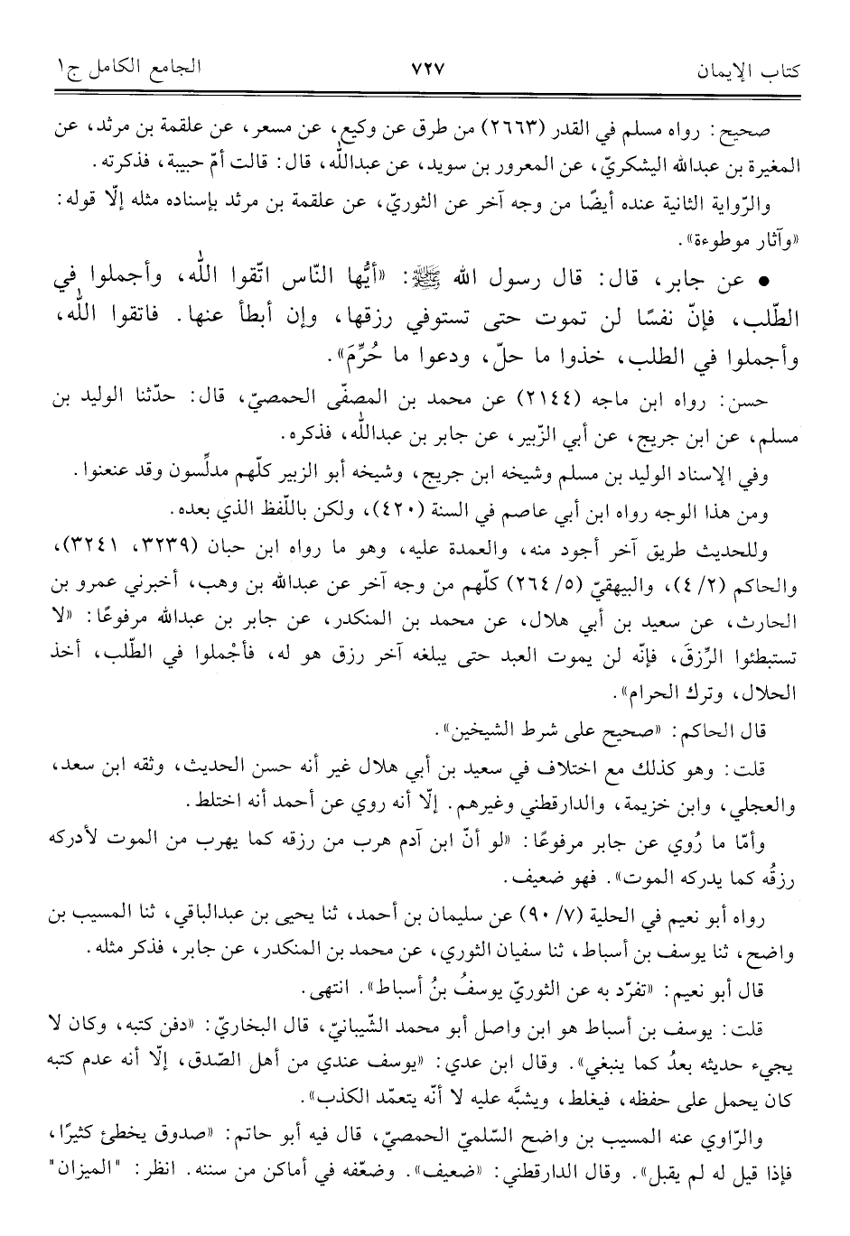 وأمّا ما رُوي عن جابر مرفوعًا: "لو أنّ ابن آدم هرب من رزقه كما يهرب من الموت لأدركه رزقُه كما يدركه الموت". فهو ضعيف.