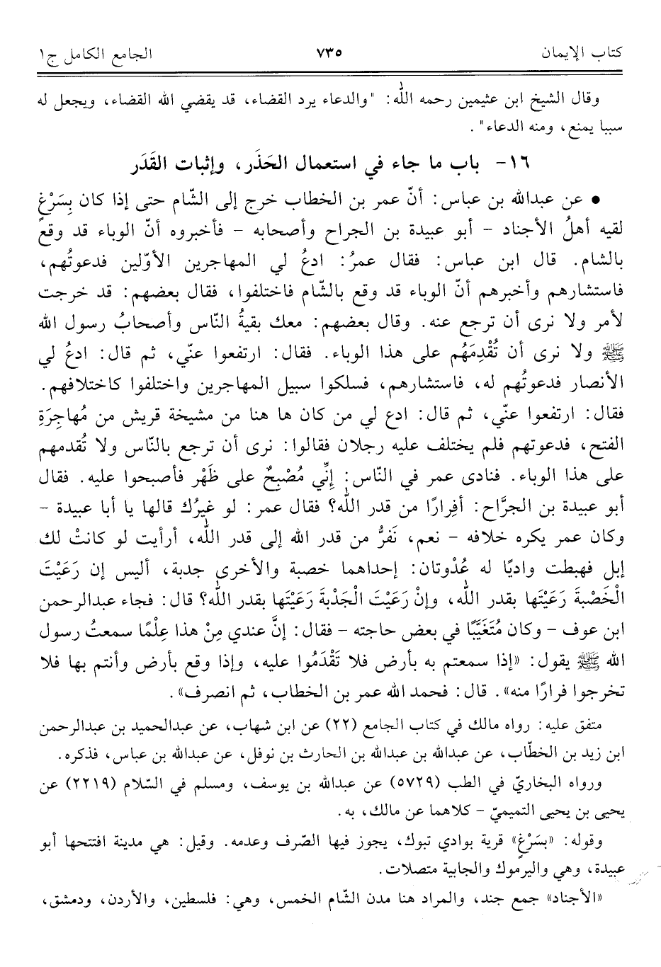 ١٦ - باب ما جاء في استعمال الحَذَر، وإثبات القَدَر