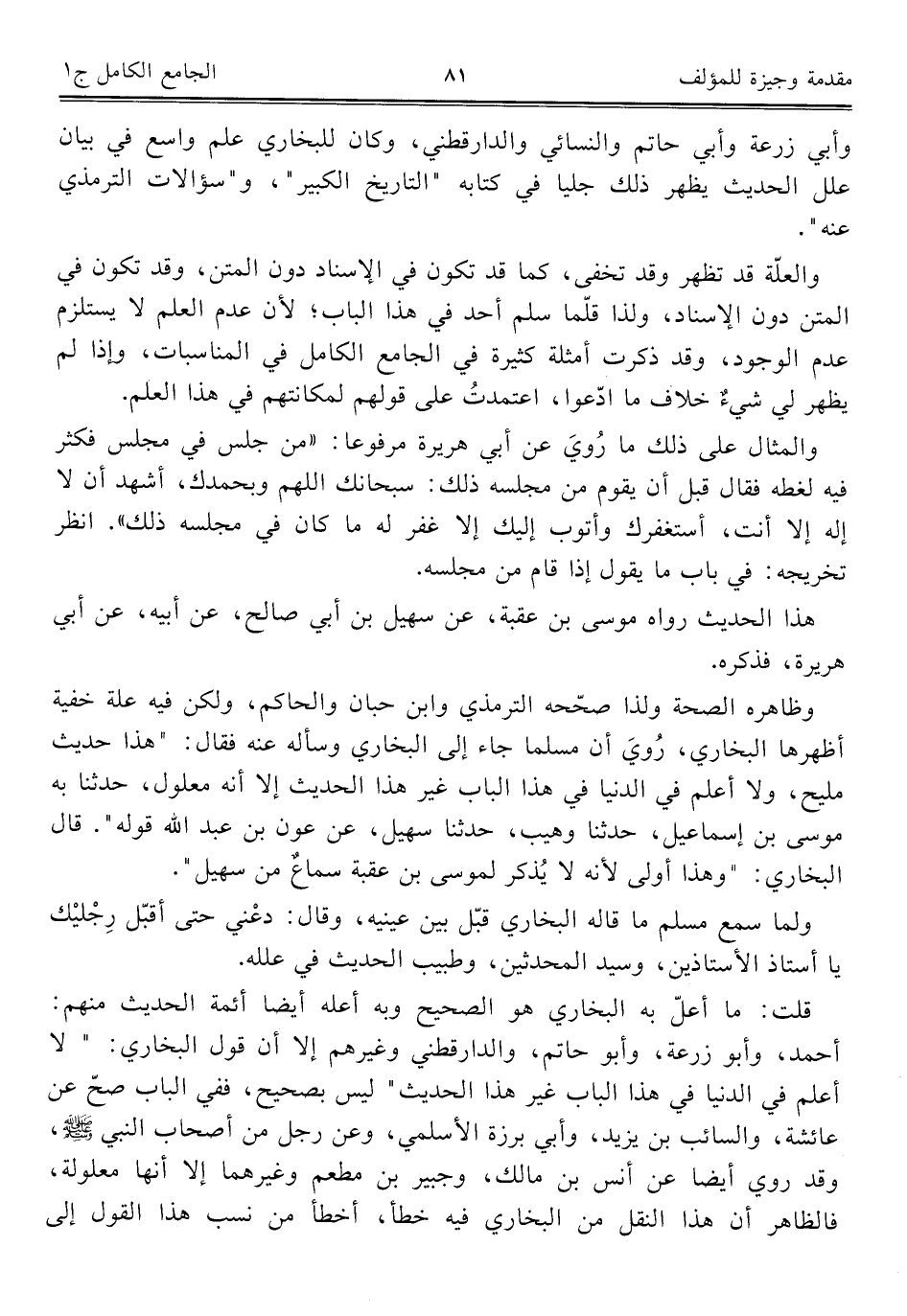 والعلّة قد تظهر وقد تخفى، كما قد تكون في الإسناد دون المتن، وقد تكون في المتن دون الإسناد، ولذا قلّما سلم أحد في هذا الباب؛ لأن عدم العلم لا يستلزم عدم الوجود، وقد ذكرت أمثلة كثيرة في الجامع الكامل في المناسبات، وإذا لم يظهر لي شيءٌ خلاف ما ادّعوا، اعتمدتُ على قولهم لمكانتهم في هذا العلم.