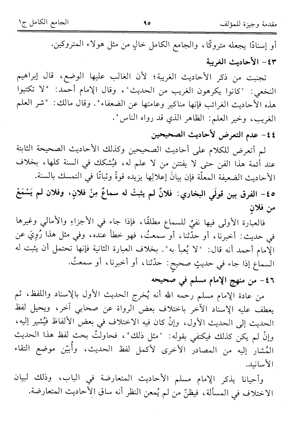 لم أتعرض للكلام على أحاديث الصحيحين وكذلك الأحاديث الصحيحة الثابتة عند أئمة هذا الفن حتى لا يفتتن من لا علم له، فيُشكك في السنة كلها، بخلاف الأحاديث الضعيفة المعلّة فإن بيانَ إعلالِها يزيده قوةً وثباتًا في التمسك بالسنة.