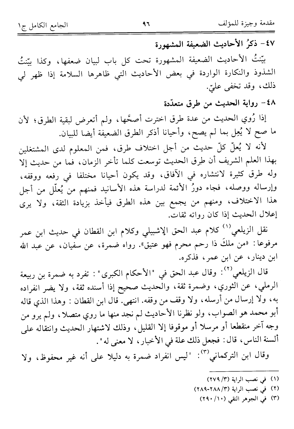 بيّنتُ الأحاديث الضعيفة المشهورة تحت كل باب لبيان ضعفها، وكذا بيّنتُ الشذوذ والنكارة الواردة في بعض الأحاديث التي ظاهرها السلامة إذا ظهر لي ذلك، وقد تخفى عليّ.