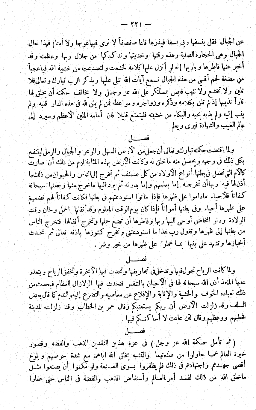 فصل وَلما اقْتَضَت حكمته تبَارك وَتَعَالَى ان جعل من الارض السهل والوعر