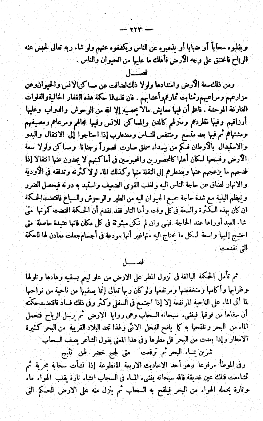 فصل وَمن ذَلِك سَعَة الارض وامتدادها وَلَوْلَا ذَلِك لضاقت عَن مسَاكِن الانس