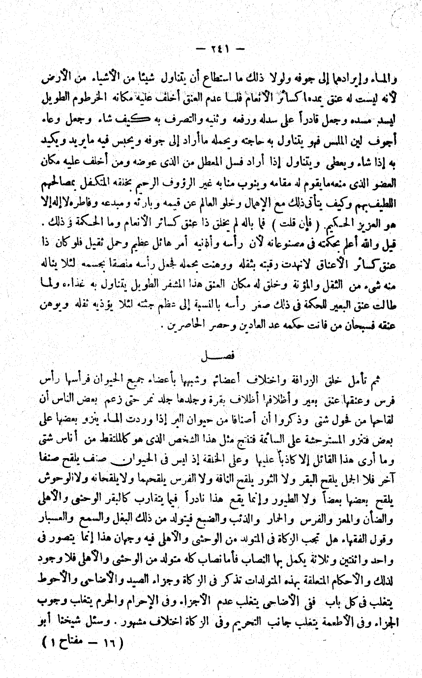 فصل ثمَّ تَأمل خلق الزرافة وَاخْتِلَاف اعضائهم وَشبههَا باعضاء جَمِيع