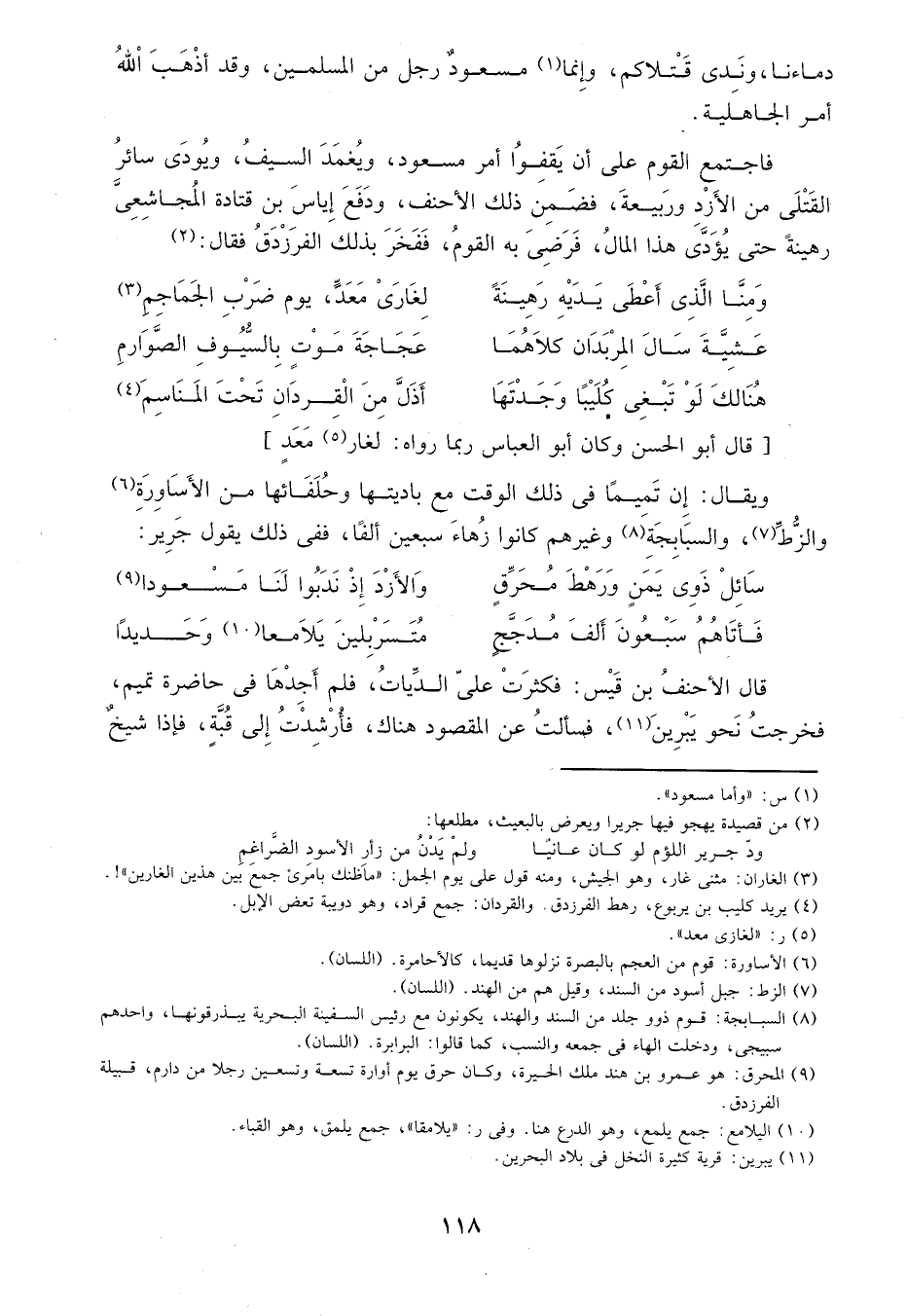 ويقال: إنما تميماً في الوقت مع باديتها وحلفائها من الأساورة6 والزط7، والسبابجة8 وغيرهم كانوا زهاء سبعين ألفاً، ففي ذلك يقول جرير: