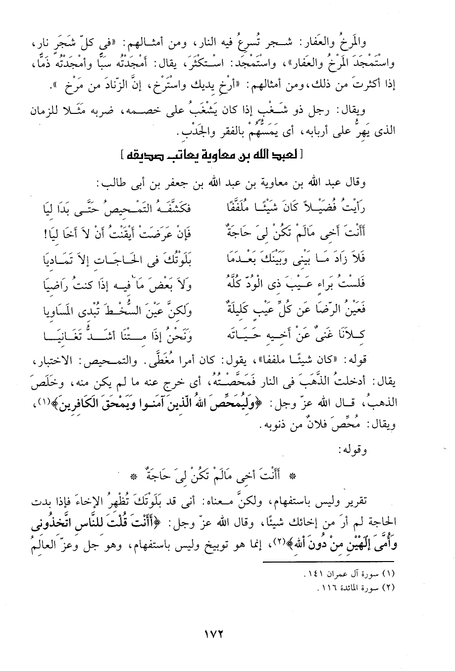 لعبد الله بن معاوية يعاتب صديقه
