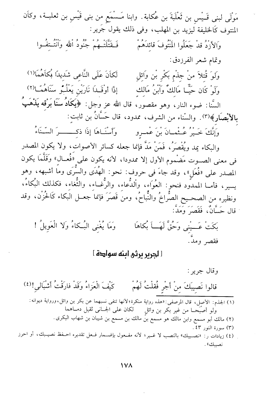 1 الجذم: الأصل، قال المرصفى: "هذه رواية منكرة؛ لأنها تنفى نسبهما عن بكر بن وائل، ورواية ديوانه: