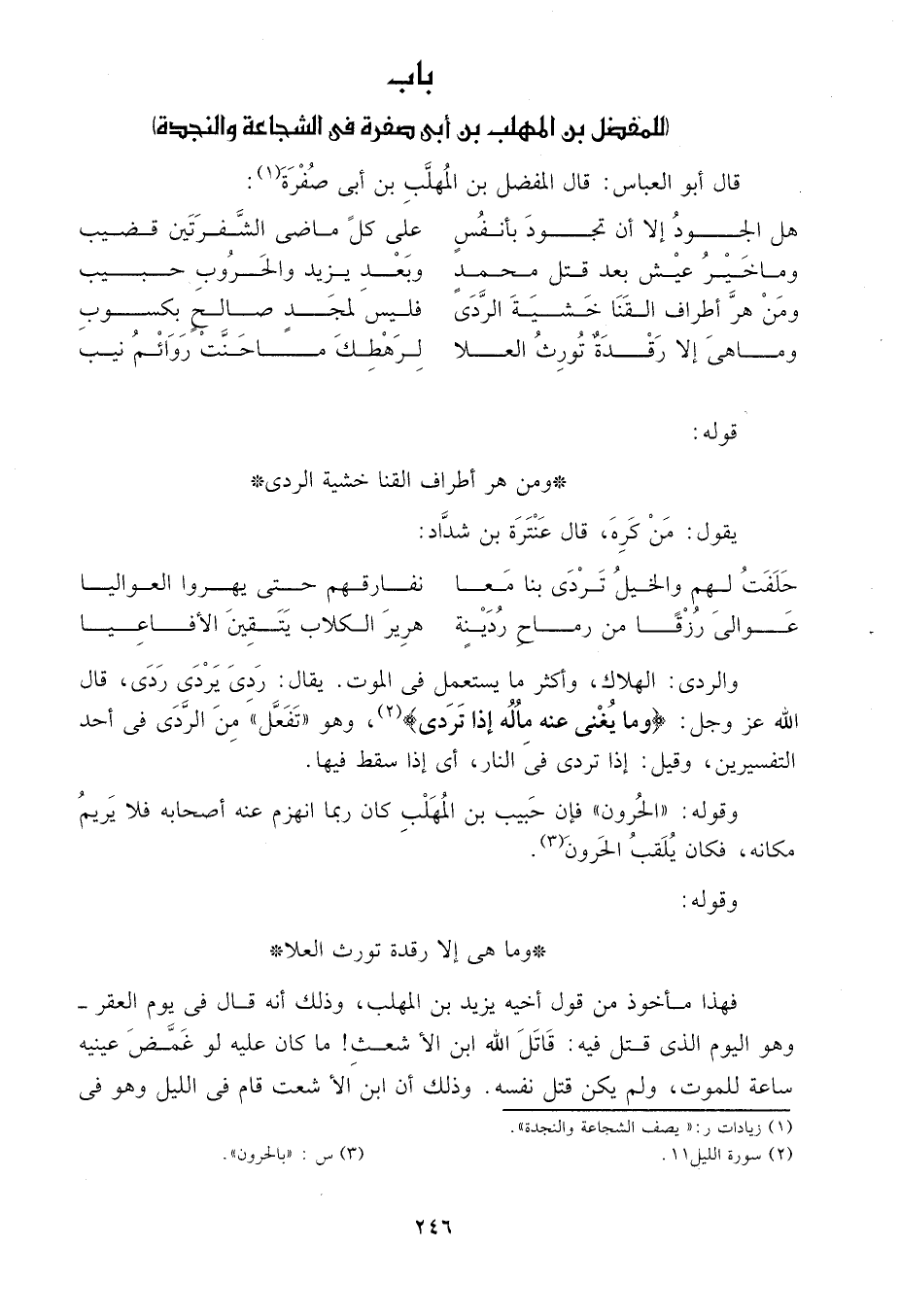 1 زيادات ر: "يصف الشجاعة والنجدة".
