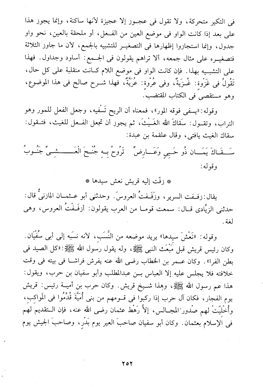 وقوله: "نعش سيدها" يريد موضعه من النسب، لأنه نسبه إلى أبي سفيان. وكان رئيس قريش من قبل مبعث النبي صَلَّى اللَّهُ عَلَيْهِ وَسَلَّمَ، وله يقول رسول الله صَلَّى اللَّهُ عَلَيْهِ وَسَلَّمَ: "كل الصيد في بطن الفرا". وكان عمر بن الخطاب رضي الله عنه يفرش فراشاً في بيته في وقت خلافته فلا يجلس عليه إلا العباس بن عبد المطلب وأبو سفيان بن حرب، ويقول: هذا عم رسول الله صَلَّى اللَّهُ عَلَيْهِ وَسَلَّمَ، وهذا شيخ قريش. وكان حرب بن أمية رئيس قريش يوم الفجار، فكان آل حرب إذا ركبوا في قومهم من بني أمية قدموا في المواكب، وأخليت لهم صدور المجالس، إلا رهط عثمان رضي الله عنه، فإن التقديم لهم في الإسلام بعثمان. وكان أبو سفيان صاحب العير يوم بدرٍ، وصاحب الجيش يوم