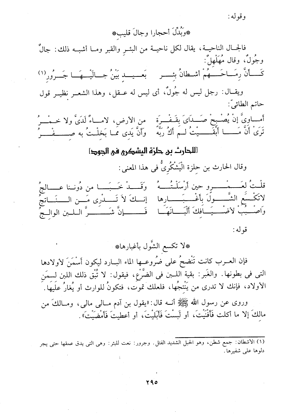 1 الأشطان: جمع شطن، وهو الحبل الشديد الفتل. وجرور: نعت للبئر: وهي التي يدق عمقها حتى يجر دلوها على شفيرها.